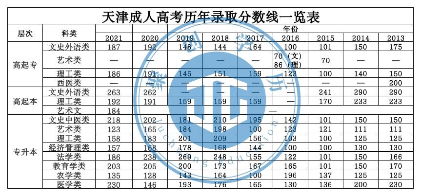 天津市成人高考历年录取分数线-尊龙凯时人生就是搏